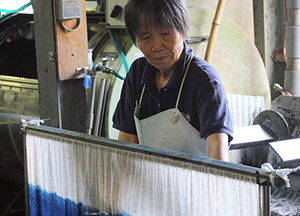阿波正藍・しじら織に加え、力織機で織るデニム生地、阿波紬などを生産・販売している『岡本織布工場』のショップが『藍布屋…