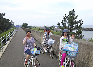 徳島市川内町と鳴門市撫養町を結ぶ、全長約32kmのサイクリングロード。吉野川、今切川、旧吉野川の流域と紀伊水道を望む海…