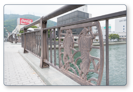 続いて現れるのは、新町橋のモニュメント。欄干には阿波おどりのデザインが取り入れられています。