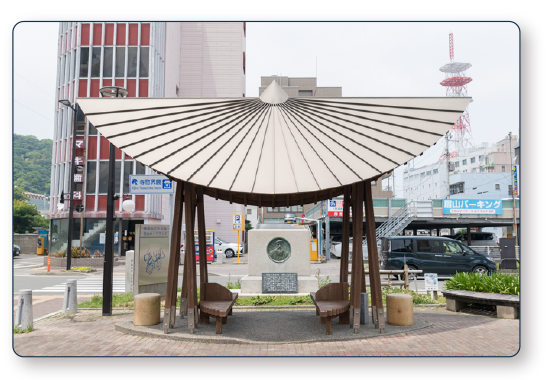 阿波おどり会館の正面には、変わった形の休憩所が。この休憩所はお遍路さんのために用意されたヘンロ小屋なのですが、この形、どこかで見たことありますよね?