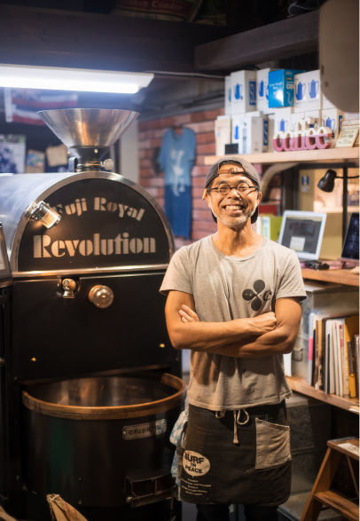 豊富正史さんは、異業種からロースターへと転身。インドネシアやコロンビア、グアテマラ、コスタリカ、ブラジルなど、コーヒー豆の産地に足を運び、生産者と直接対話したことでコーヒーへの想いがいっそう深まったと言います。サーフィンを趣味としている豊富さんの大好きな言葉は“PEACE!”。毎日、平和の喜びを感じられる一杯を提供することに喜びを感じています。