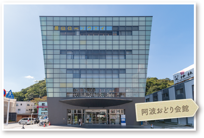 徳島駅からまっすぐ南、眉山の方角を指して10分ほど歩いた先、その突き当りにあるのがこの建物。ここは一年中ずっと阿波おどりを見て踊って楽しめる『阿波おどり会館』です。