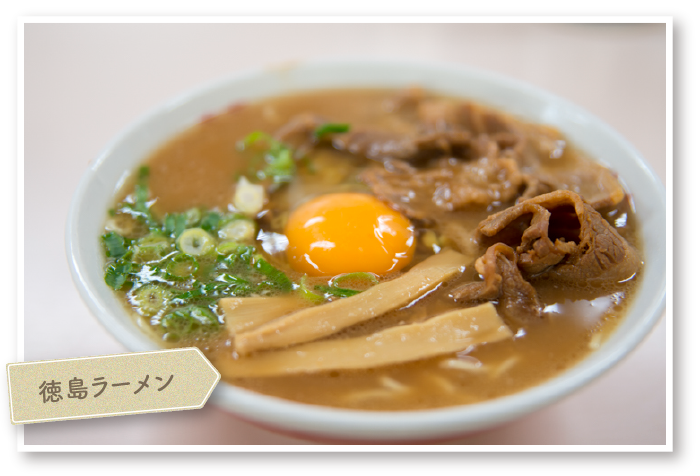 言わずと知れた徳島を代表するご当地グルメのひとつ、『徳島ラーメン』。阿波おどり会館から徒歩圏内には、「中華そば いのたに」や「東大 大道本店」、「大孫 新町店」、「銀座一福」などのお店があります。初めて徳島市を訪れたら一度は立ち寄ってほしいお店ばかりです。「茶系」と呼ばれる濃厚な豚骨醤油スープを使うのが徳島ラーメンの特徴のひとつですが、市内には、100店舗以上のお店があると言われ、スタンダードな「茶系」のほか、「白系」、「黄系」と呼ばれるスープを使用するお店もあるなど、お店ごとに異なる味を楽しむことができます。また、チャーシューの代わりとなる甘辛いバラ肉、そしてトッピングに生卵をのせるのも特徴のひとつです。