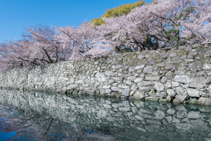 眉山を彩る桜、徳島城跡のお堀や川面が水鏡になって映る桜は、水都・徳島が誇る自慢の景色です。