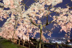 眉山中腹にある西部公園は、公益財団法人日本さくらの会が選定する「日本のさくら名所100選」に県内で唯一選ばれている桜の名所です。園内には約500本のソメイヨシノが咲き誇り、開花時期には街の夜景とともにライトアップされた夜桜も楽しむことができます。戦後しばらくは燃料不足による薪採取のために禿山が目立つ眉山でしたが、同公園の桜は大切に守られ、春には多くの人でにぎわってきた歴史があります。