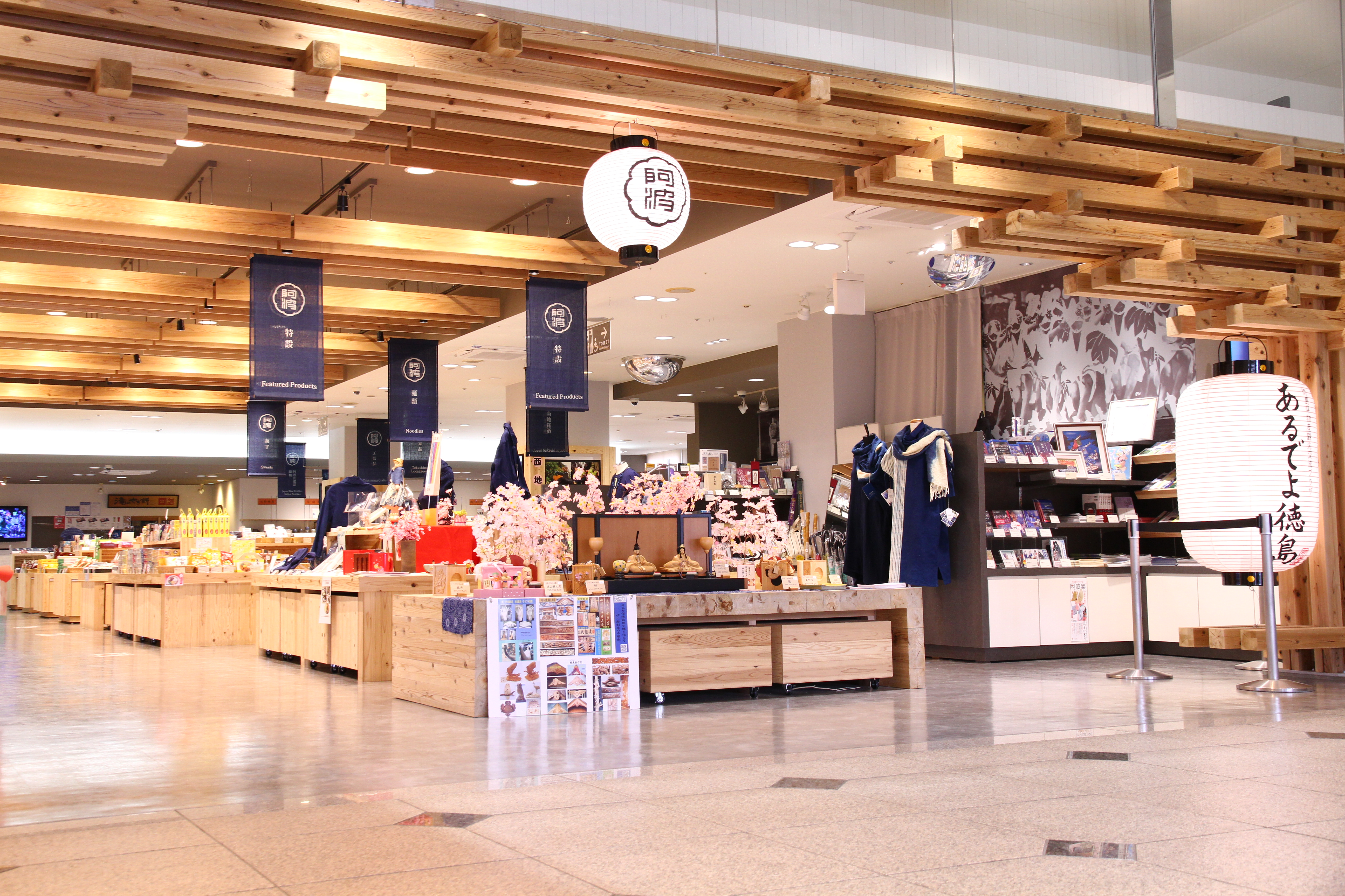 徳島市のランドマーク眉山のふもとの『阿波おどり会館』内にある『あるでよ徳島』。「あるでよ」とは「ありますよ」という意味の方言で、その名のとおり徳島銘菓やすだちや鳴門わかめなど徳島の特産品・お土産が一堂に揃えています。大谷焼や阿波藍などといった工芸品もお土産にもってこいです。季節に応じた企画展や市町村の観光情報など“徳島を楽しむ”がいっぱい詰まったスポットです。