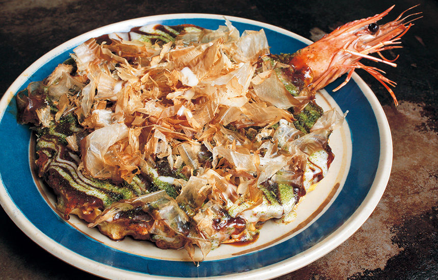 国産小麦や山芋、玉子にこだわったお好み焼きは、外はサックリ、中はふっくら。新鮮な有頭エビがまるまる一匹入った[粉屋焼き]が当店一番のおすすめです。徳島名物の[豆天玉]は糖分を控えめに、さらに焼き上げる際もオリーブオイルを使用しています。お好みで自家製のマヨネーズをトッピングすればおいしさがアップするので試してみてください。レトロな雰囲気の店内で、こだわりの粉物をお楽しみください。