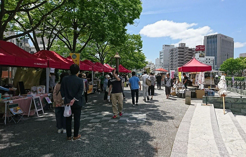 毎月第3日曜日に新町川の水際公園にて開催される旬がいっぱいつまった地元学生たちが運営するマーケットです。地元産の野菜や果物加工品、カフェやパン等が集まり、いろんな商品が当たる抽選会や音楽ライブなどお楽しみイベントも満載で、大人から子どもまで楽しめる心あたたまる日曜市です。地元の様々なお店が集まるので、お気に入りのお店を見つけてください。