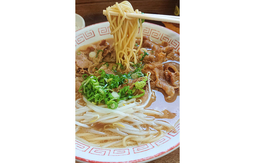 麺は中細ストレートで、豚骨醤油がベースの比較的すっきりした味わいのスープとよく合うといっていただけます。シンプルな昔ながらの味わいの[中華そば]のほか、豚バラ肉がたくさんのった[肉入り]、食べごたえ抜群の[ワンタンメン]などをご提供しています。また、プラス50円でたっぷりの刻みニンニクをトッピングとしてご注文いただくことが可能です。「パンチが欲しい」方はぜひお試しくださいね。