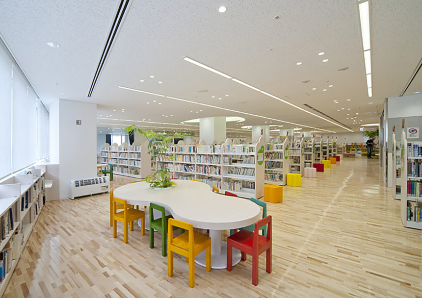 徳島市立図書館は、徳島駅前商業ビル(アミコビル)内に位置し、総面積が約3,400㎡、蔵書数は約50万冊ある。館内は、森や高原をイメージしたデザインで、天然の植栽をふんだんに施し、緑豊かで明るく過ごしやすい空間となっている。5階「こども室」では、絵本や児童書を中心に、6階「一般室」では、文芸書、実用書、新書、新聞、雑誌等、多様な分野の書籍を揃えている。カウンターに行かず自分で貸出処理ができる「自動貸出機」や、銀行のATM感覚で専用の通帳に貸出中の本のタイトル等を印字する「読書記録帳」を設置。また自宅のパソコンやスマートフォンで電子書籍が読める「電子図書館」など、最新技術を導入したサービスを提供している。他にも、5階「おはなしのへや」では、ほぼ毎日2回おはなし会を開催しており、子ども向けサービスも充実している。