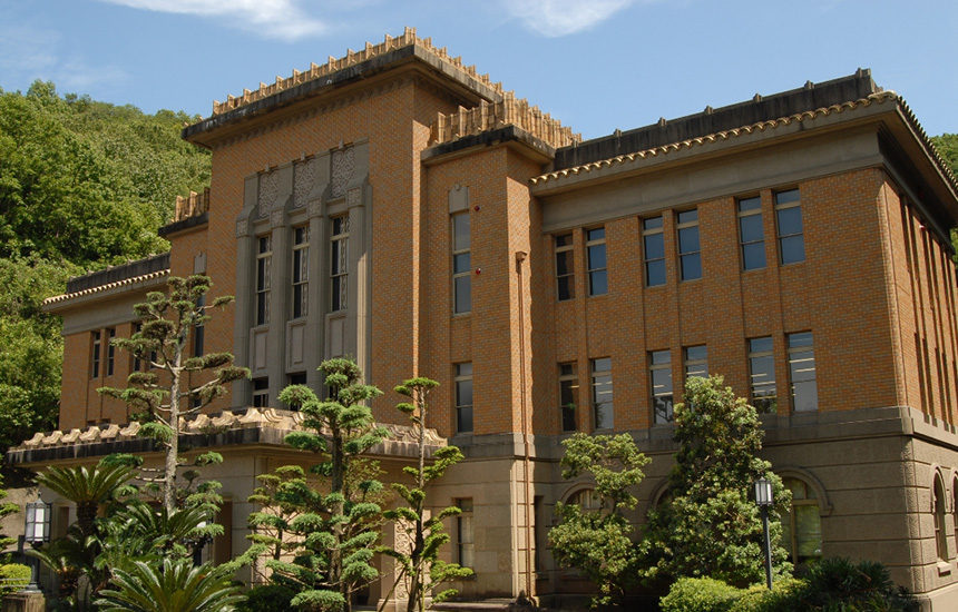 同施設は、1990(平成2)年に昭和初年の日本建築を代表する建造物であった旧県庁の玄関部分を中心にして、設計・建材とともにできる限り生かして建設された。移築された旧建材には、玄関ポーチの石組、外灯の台座、車寄せの縁石などがある。