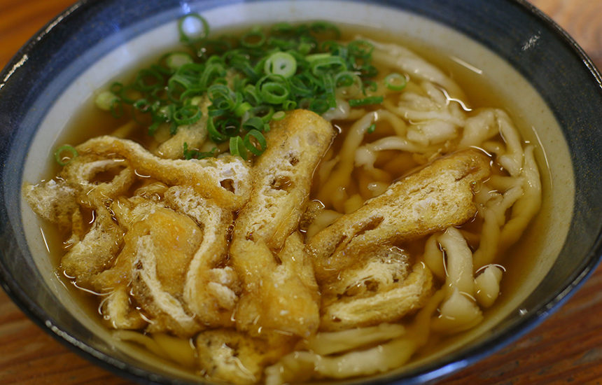 ローカルフード・“鳴ちゅるうどん”は徳島県北部鳴門市の料理でしたが、根強い人気もあった徳島市でも食べられるようになりました。あっさりとした醤油味のダシ、具材はネギと刻み揚げのみとシンプルな構成ですが、どこか懐かしい味わいで、名前どおり「ちゅるっと」食べられる爽快なのどごしです。このほかおでんやいなり寿司といったサイドメニューも一緒にどうぞ。