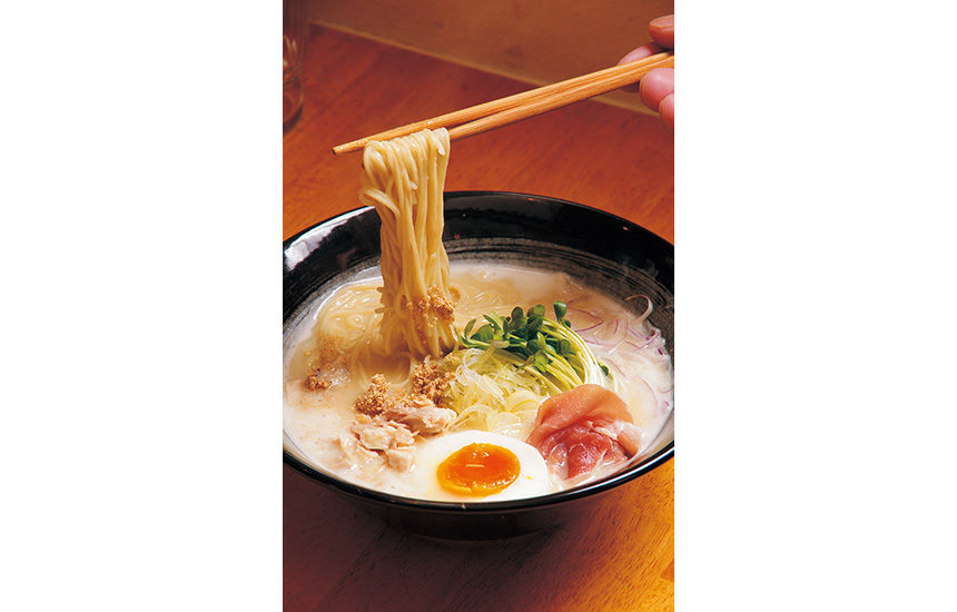 [鯛塩ラーメン]と言えば『堂の浦』といっていただくこともあり、本当に嬉しく思います。新しく、鶏塩が登場したのでこちらもぜひお召し上がりください。丸鶏と7種類の野菜を8時間じっくりと煮込んで出来上がったスープに、鳴門産の塩を使用した特製ダレを合わせた濃厚でまろやかな一杯となっています。3種類ある[鶏の塩ラーメン]の中でも特に人気を集めているのが[白]。こちらは基本のスープにさらに野菜スープを加えてポタージュ風に。とろみがあるが意外にあっさりで女性でもペロリと召し上がっていただけると思いますよ