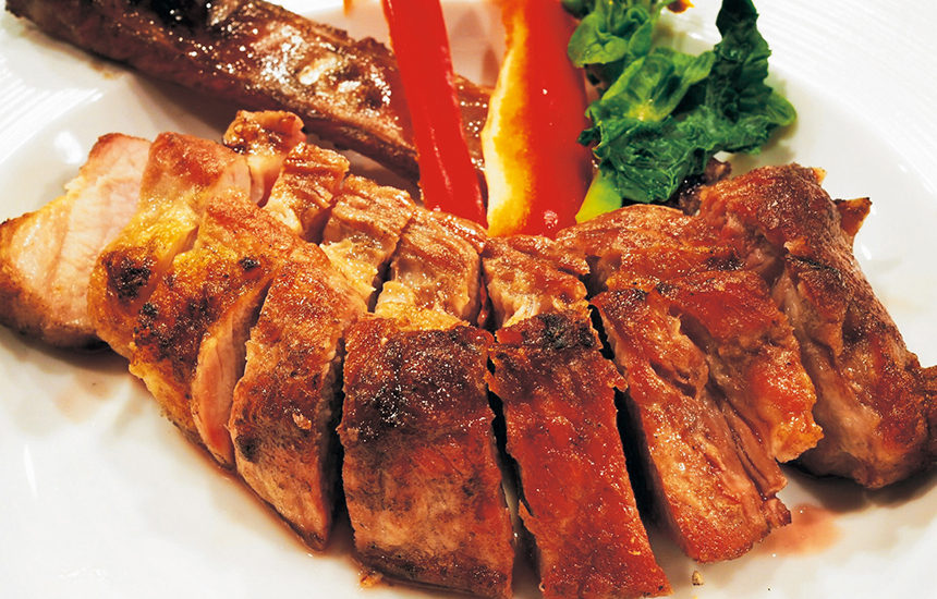 阿波黒牛、阿波美豚、神山鶏などといった徳島のブランド肉、さらにジビエの肉を扱っています。私も父もハンターをしていて、肉の状態を説明しながらお客さまに提供します。猪の骨付きバラ肉を豪快に焼き上げた[猪のスペアリブ]は、旨みが凝縮したおすすめの一品です。ジビエの肉は丁寧に処理してから調理しているのでクセが少なく、ジビエを食べたことのない人にも挑戦しやすい味だと思います。