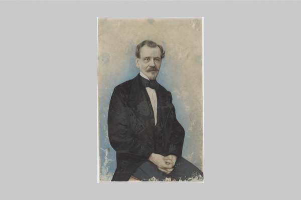 まるで写真のような父親像は、薄い象牙板を用いてマカオの画家に描かせ、父親への敬愛の情が伝わる一枚です。(徳島県立図書館寄託)