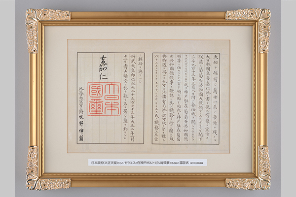 大正2年6月11日付、大正天皇親署に約三寸角の「大日本国璽」。神戸・大阪ポルトガル総領事の認証状です。