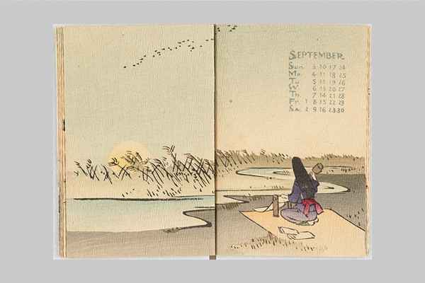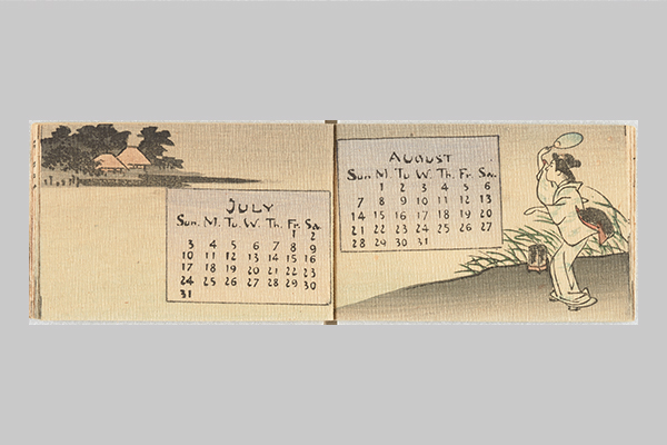 携帯用豆ごよみ。季節に応じた和風イラストのカラー刷りで、女性用なのか少し小型版の横型です。