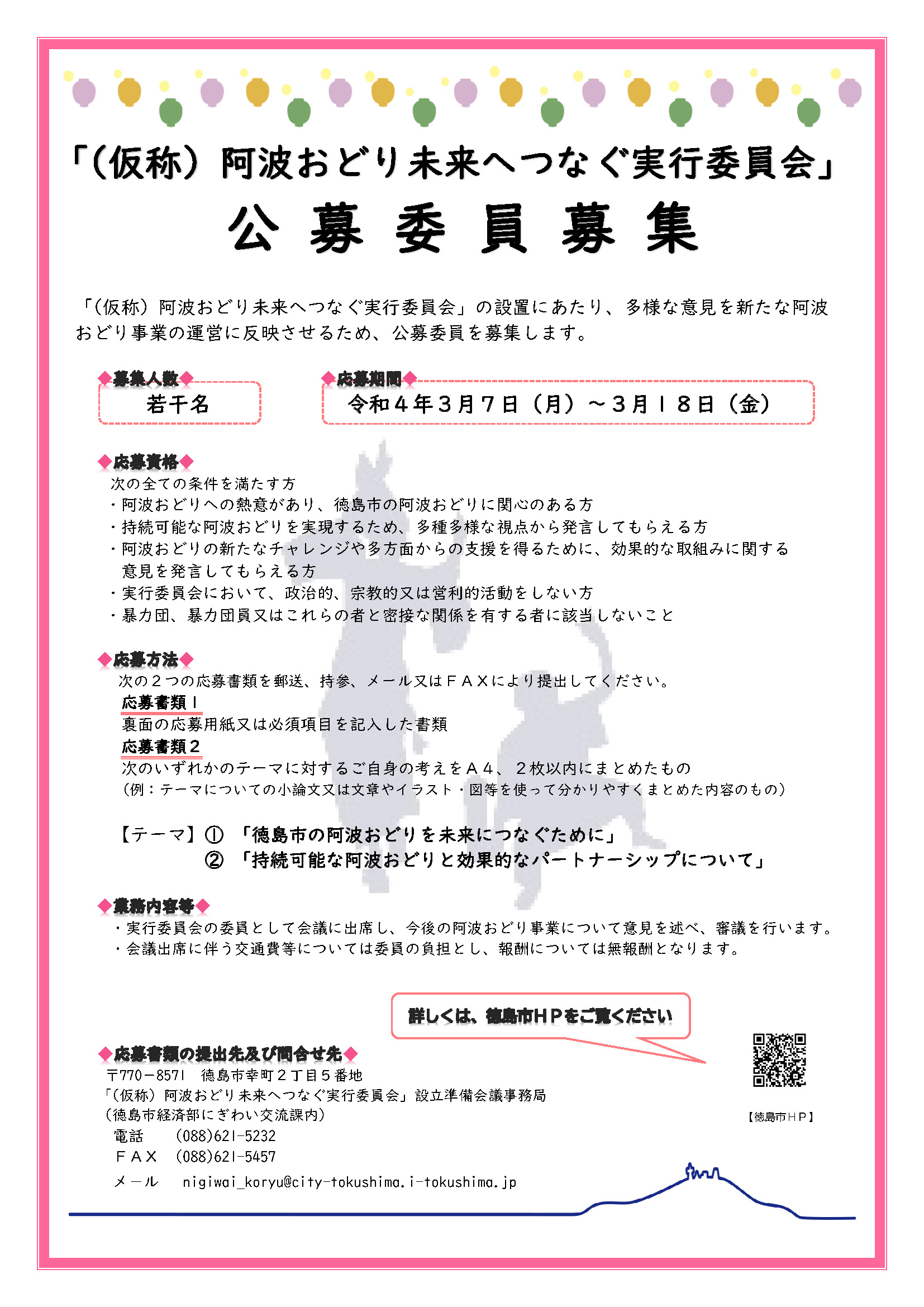 「(仮称)阿波おどり未来へつなぐ実行委員会」公募委員募集(徳島市公式ホームページ)