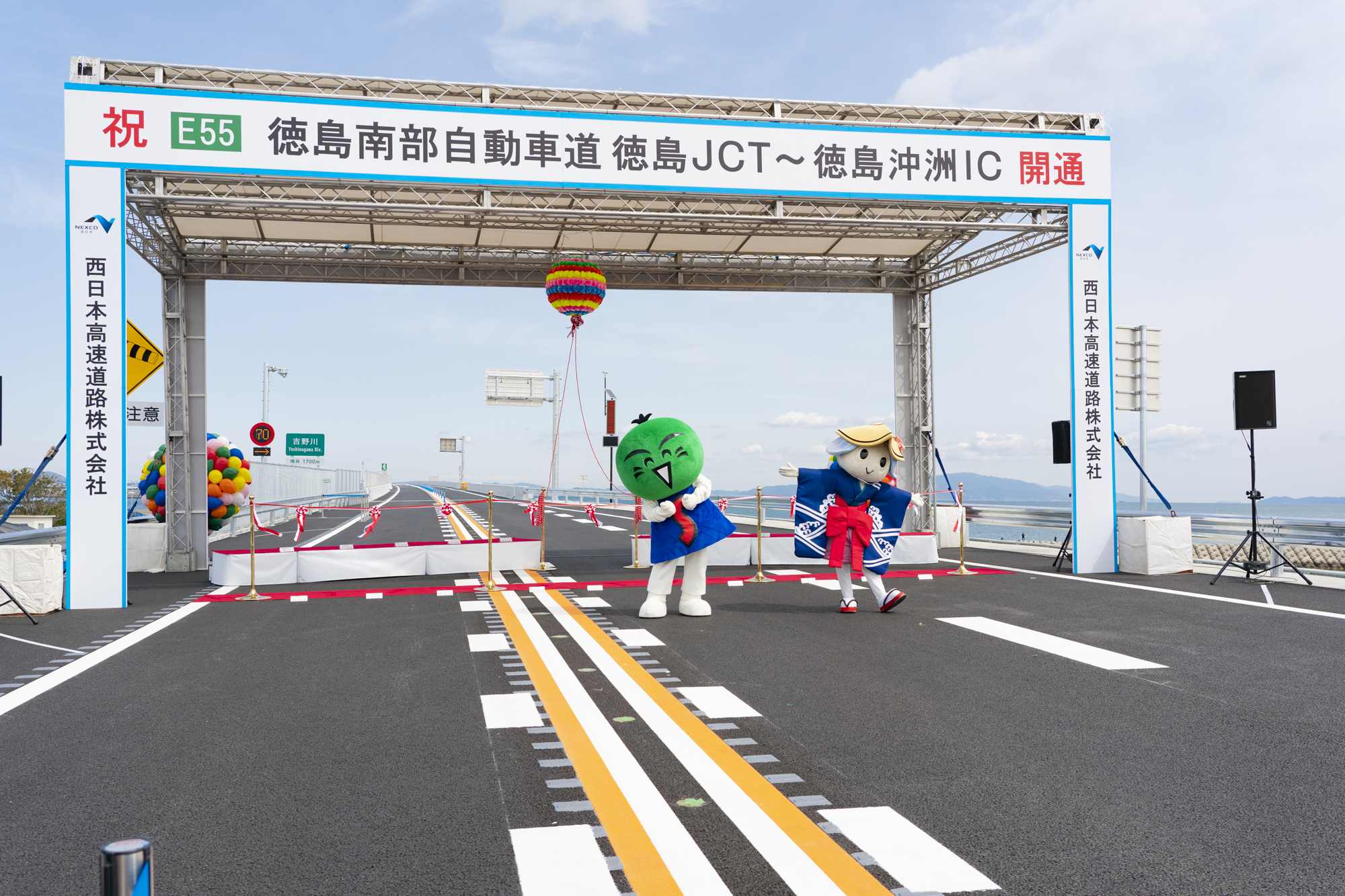 今回の開通で、関西方面や高松方面から徳島市津田ICまで直結され、観光の広がり、流通販路拡大、渋滞緩和等が期待できます。